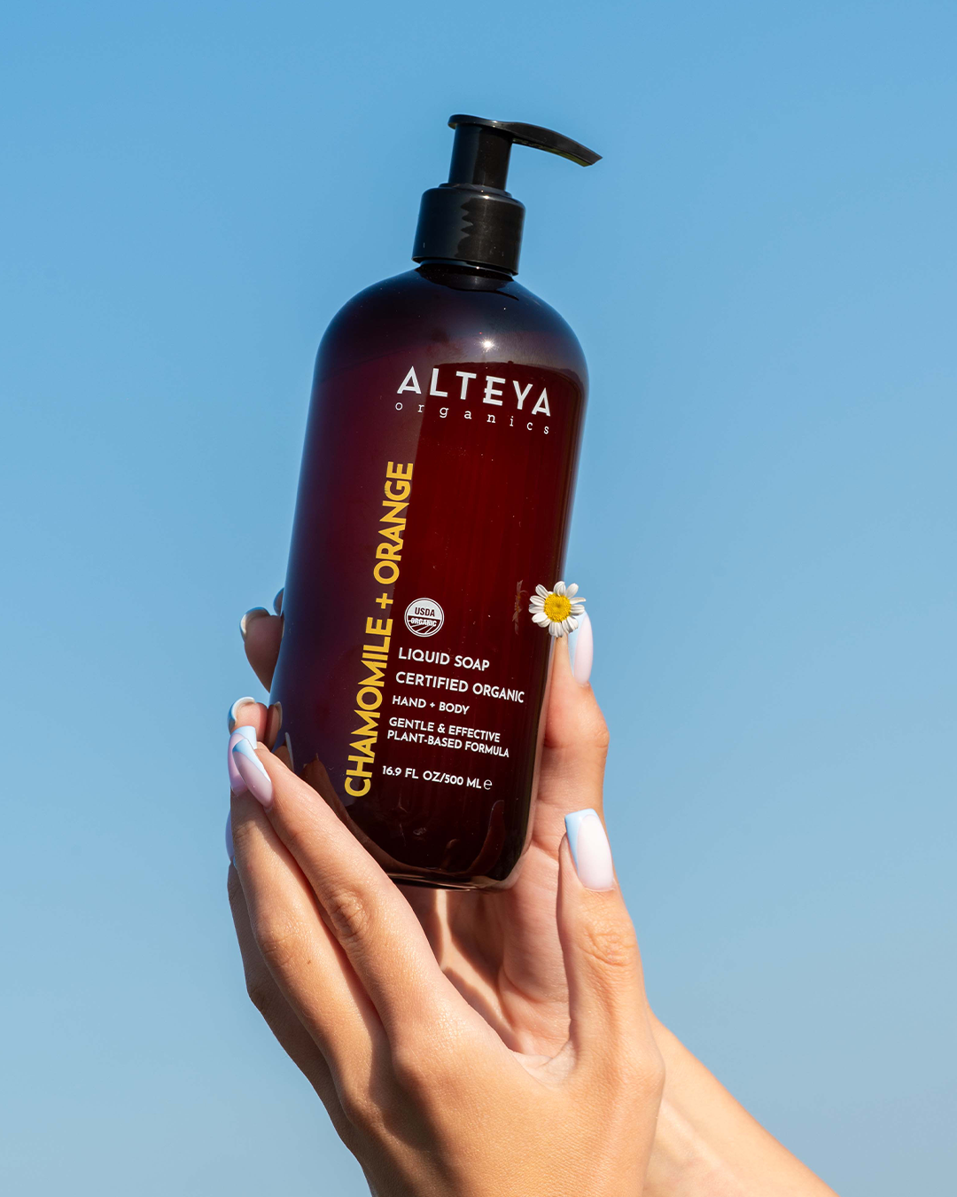 Ekologiškas rankų ir kūno prausiklis Ramunėlė ir Apelsinas, Alteya Organics, 500 ml