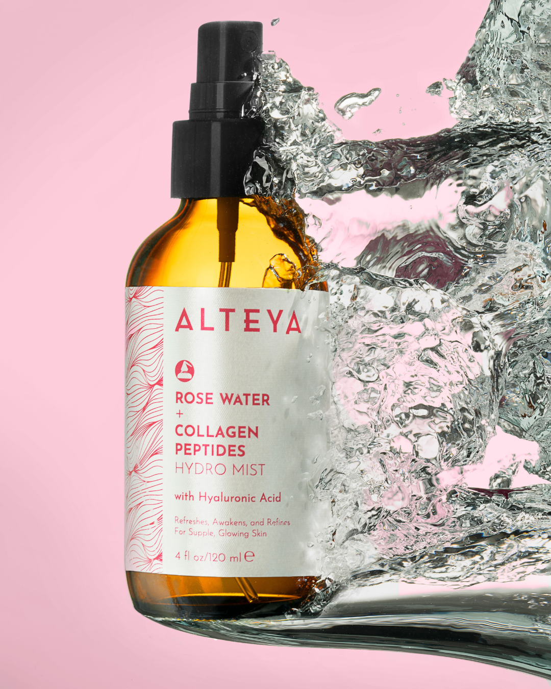 Invigorating Rose Water (Rosa Damascena) from Alteya’s rose gardens rejuvenates skin and boosts brighter looking complexion.
