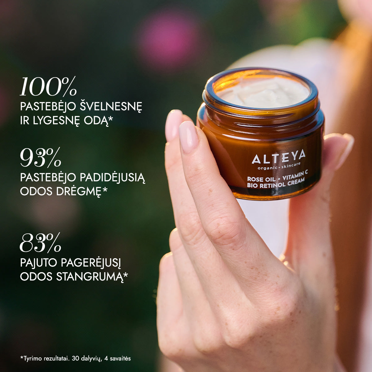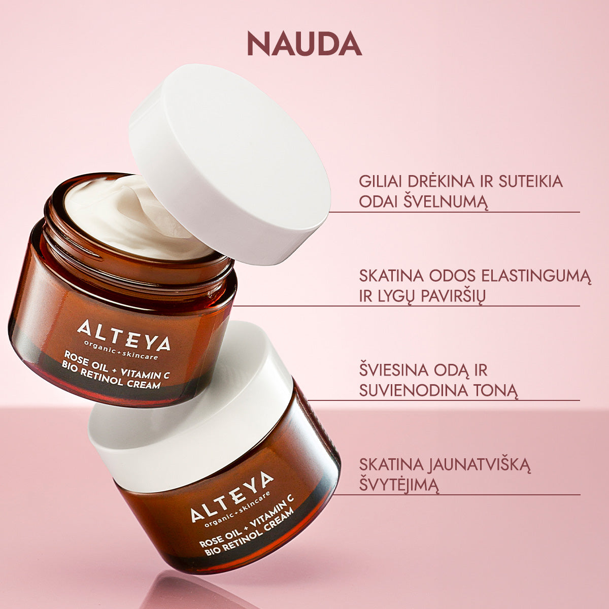 Ekologiškas veido kremas su rožių aliejumi, vitaminu C ir augaliniu retinoliu „Luminous Rose"